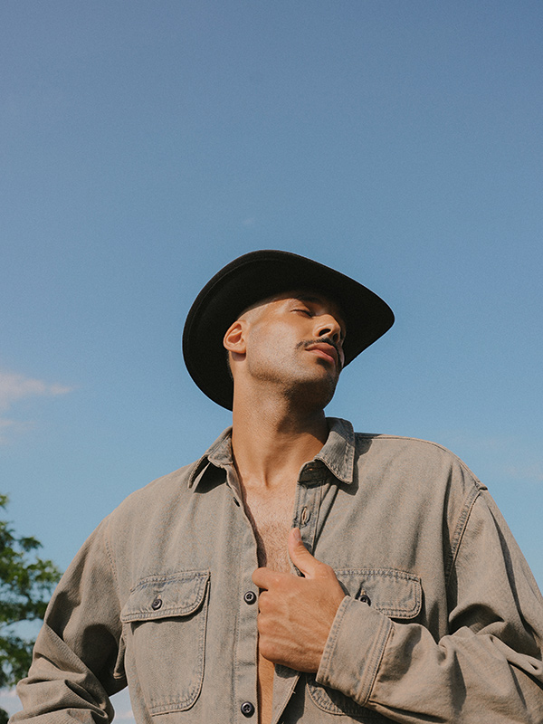 Lightwash denim from LEVI’S, real leather trucker jacket from RECLAIMED VINTAGE.