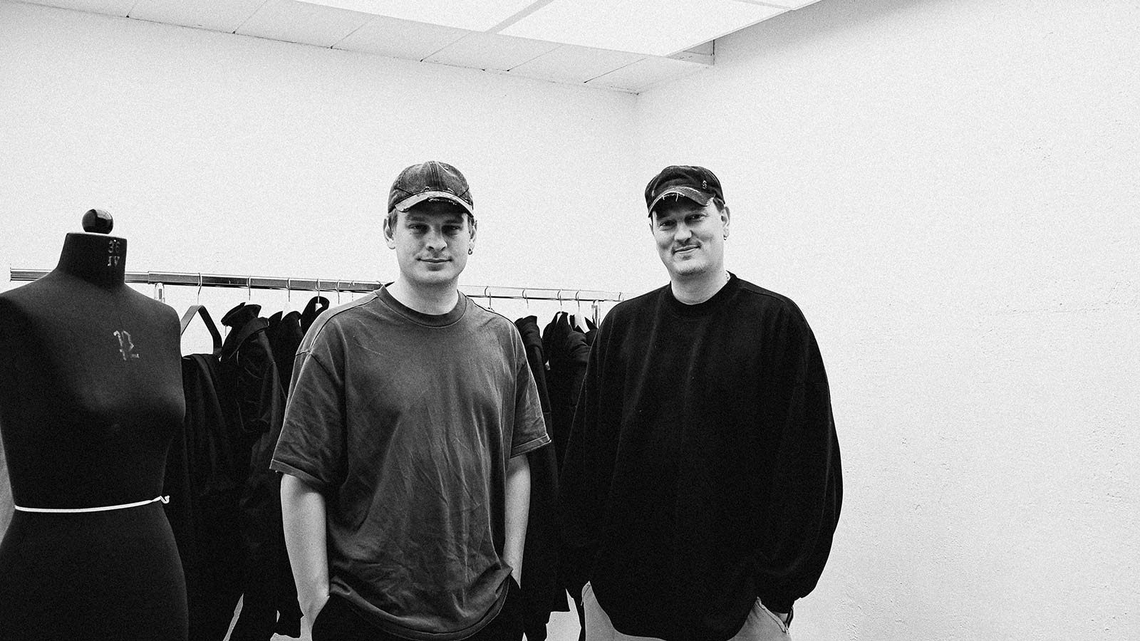 If Berlin were a fashion label, the metropolis would be the Haderlump collective, founded in 2021. Creative Director Johann Ehrhardt and CEO Julius Weißenborn know how to transfer the spirit of the city to fashion. With dark colors, daring shapes and the right amount of edginess, they attract more attention year after year, most recently with their “Ex Libris” show at Berlin Fashion Week in the summer. During a visit to the studio in Berlin-Neukölln, the founders not only provide detailed insights into sketches and work processes, but also reveal why they have never really had much to do with fashion, why they produce exclusively with deadstock materials and what else Haderlump will become in the coming years.