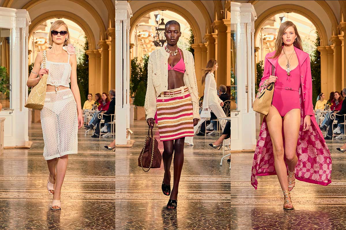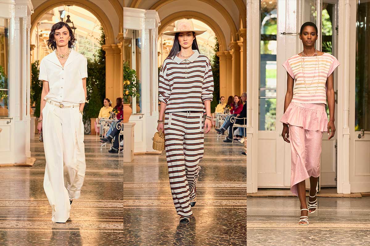 It’s not about spectacle or speed. It’s about presence. The Chanel Creation Studio designs a wardrobe for women who dress with awareness. During the day, they wear ivory suits, nautical-inspired looks and crochet pieces that look as light as fog over the lake. These are not outfits for posing – but for life: walks through the garden, boat trips on Lake Como, quiet arrivals at the Grand Hotel Tremezzo.