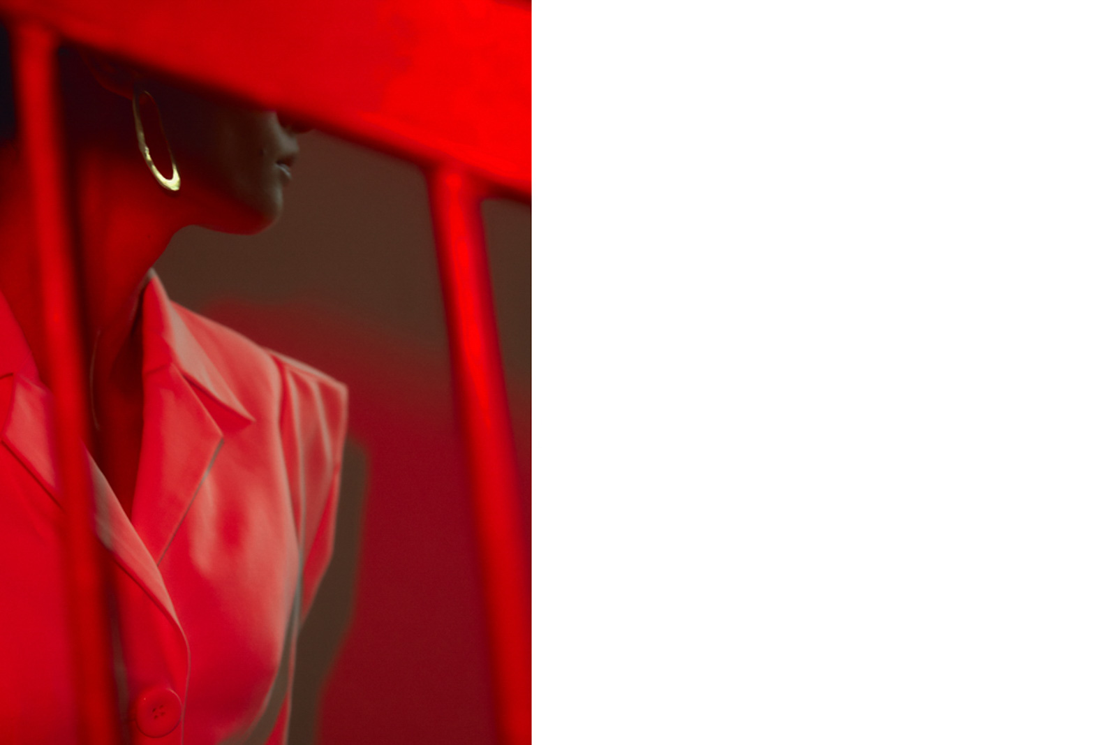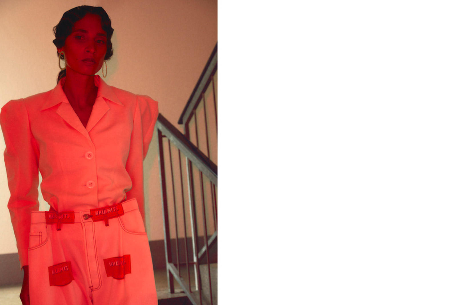 Jacket from FORBIDDEN DENIMERIES. Jacket and trousers from RAVENITE. Earrings from SHERYLIN. Jacket and trousers from RAVENITE. Earrings from SHERYLIN. Jacket and trousers from RAVENITE. Earrings from SHERYLIN. Jacket and trousers from RAVENITE. Earrings from SHERYLIN. Blazer by JACQUELINE LOEKITO. Earrings by VANESSA SCHINDLER. Shoes by NICHOLAS KIRKWOOD.