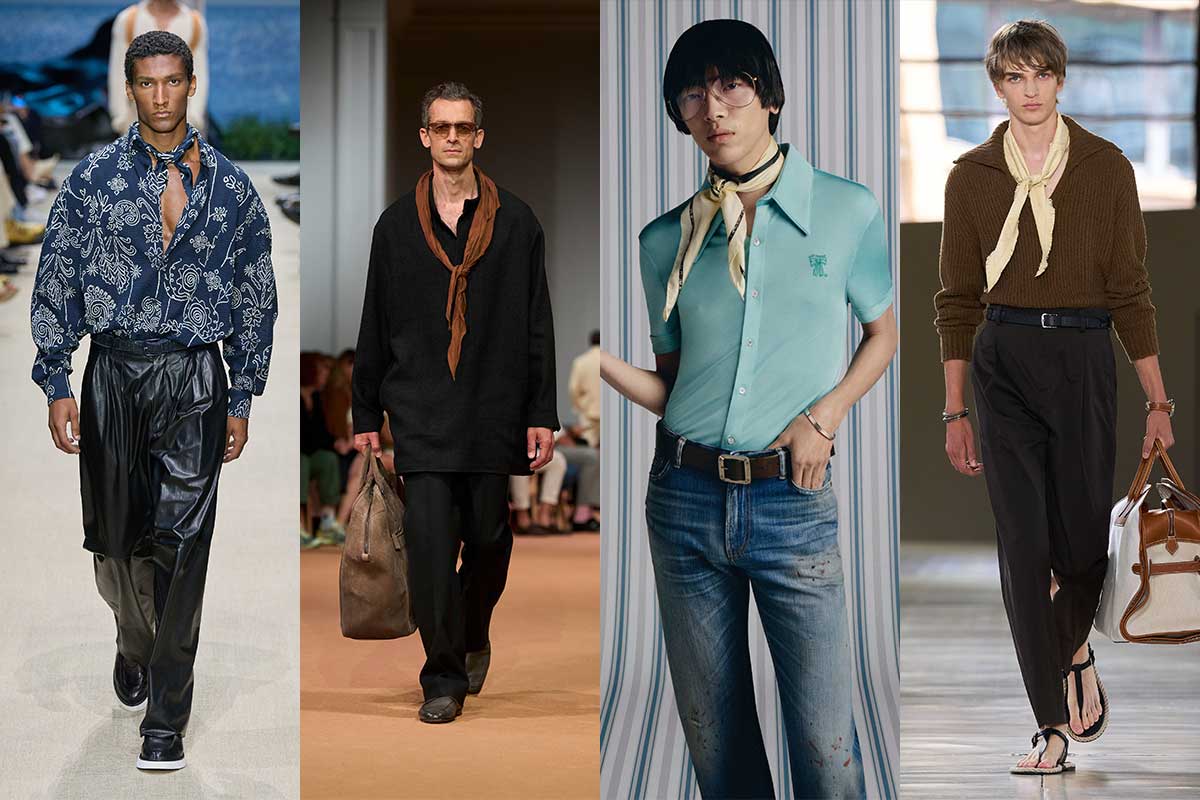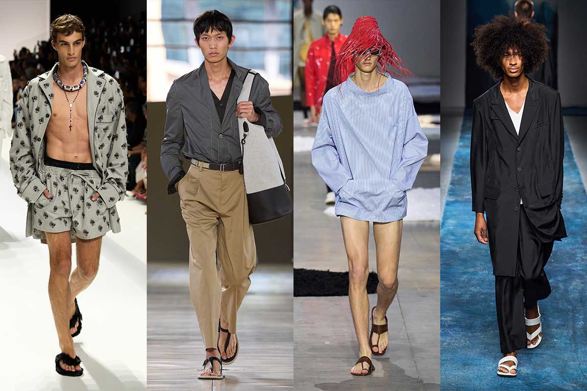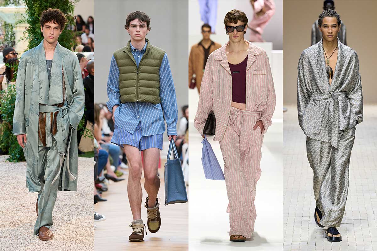 Menswear trends for spring/summer 2026 are anything but basic. Comfort reigns, with easy cuts and loose fits that feel like summer – but with a touch of luxury designer oasis. Pyjama looks, polished boho, oversized Bermudas and retro seventies micro shorts provide the yummy vibes. Flip-flops and weekender bags also make for the ultimate #finishthelook.