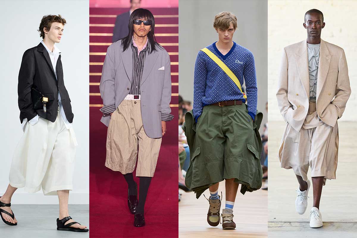The upcoming Bermudas are wide and shaped. Flowing, but never sloppy. Every look is intentional – thanks to crisp shirts, layered knits or complete blazer combinations. Our highlight: JW Anderson at Dior Men SS26 shows that Bermudas can also be architecture by fabric.