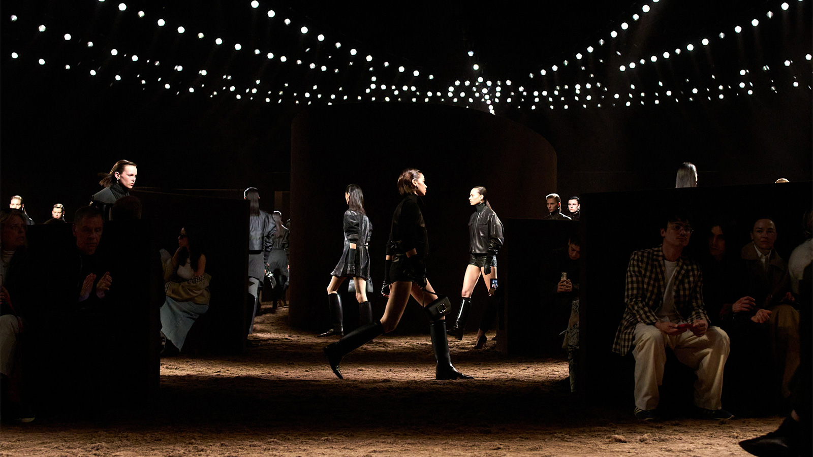 Forget the classic riding skirts of yesteryear. Here come figure-hugging leather designs with precise cuts, asymmetric silhouettes and saddle-inspired lace-ups for a dynamic, almost untamed look. Wool felt skirts fall with architectural elegance and are paired with textured knits – from off-the-shoulder tops to fine, fingerless cashmere opera gloves. A sophisticated balance between equestrian discipline and modern sensuality.