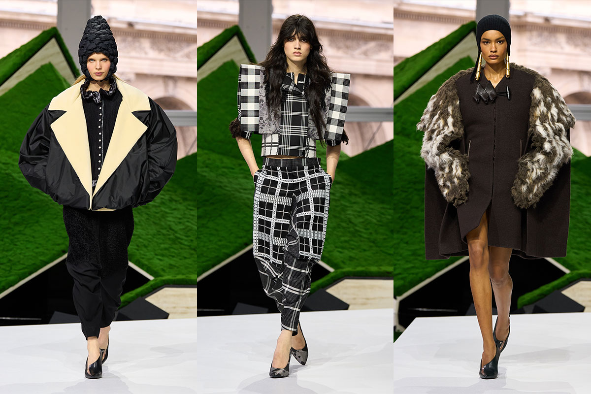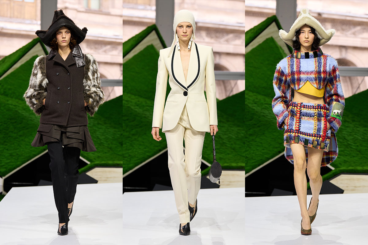 For the fall/winter 2026/27 season, Nicolas Ghesquière draws inspiration from landscapes – mountains, forests and wide open plains. This influence is reflected in the collection’s strong, protective silhouettes. Shoulders widen and shapes expand outwards, creating forms that appear firm and deliberate.