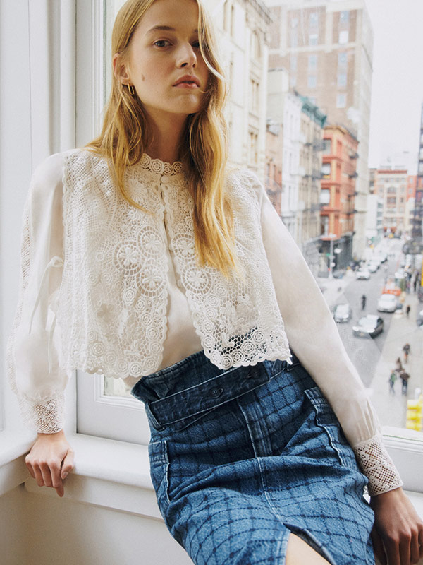 In this collaboration, Sézane’s unmistakably soft, feminine silhouettes meet the artful embroidery, patchwork elements and nostalgic details that Sea New York is known for. A match made in heaven! Morgane Sézalory, founder of Sézane, agrees: “Working with Monica and Sean again felt both familiar and exciting. Their world exudes a sense of freedom and creativity that continues to inspire me. Together we wanted to design pieces that really inspire – creations that are unique to both brands. Something very special.”