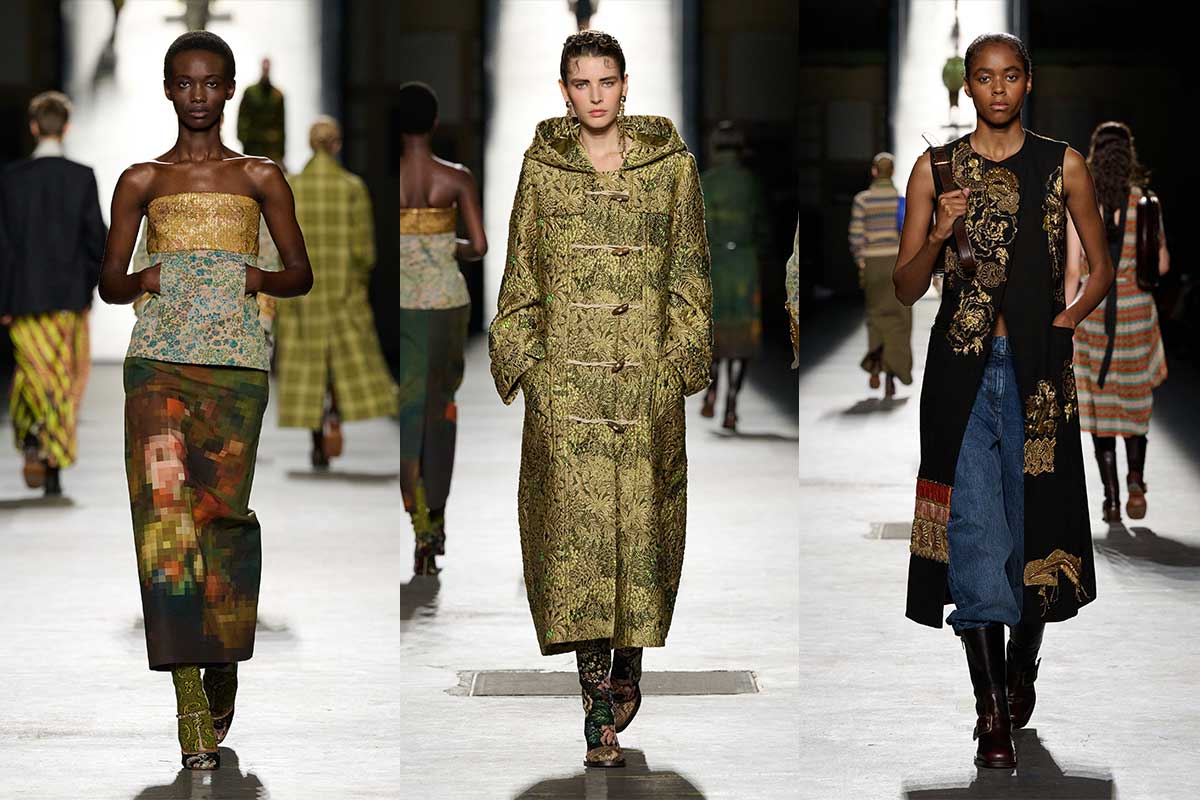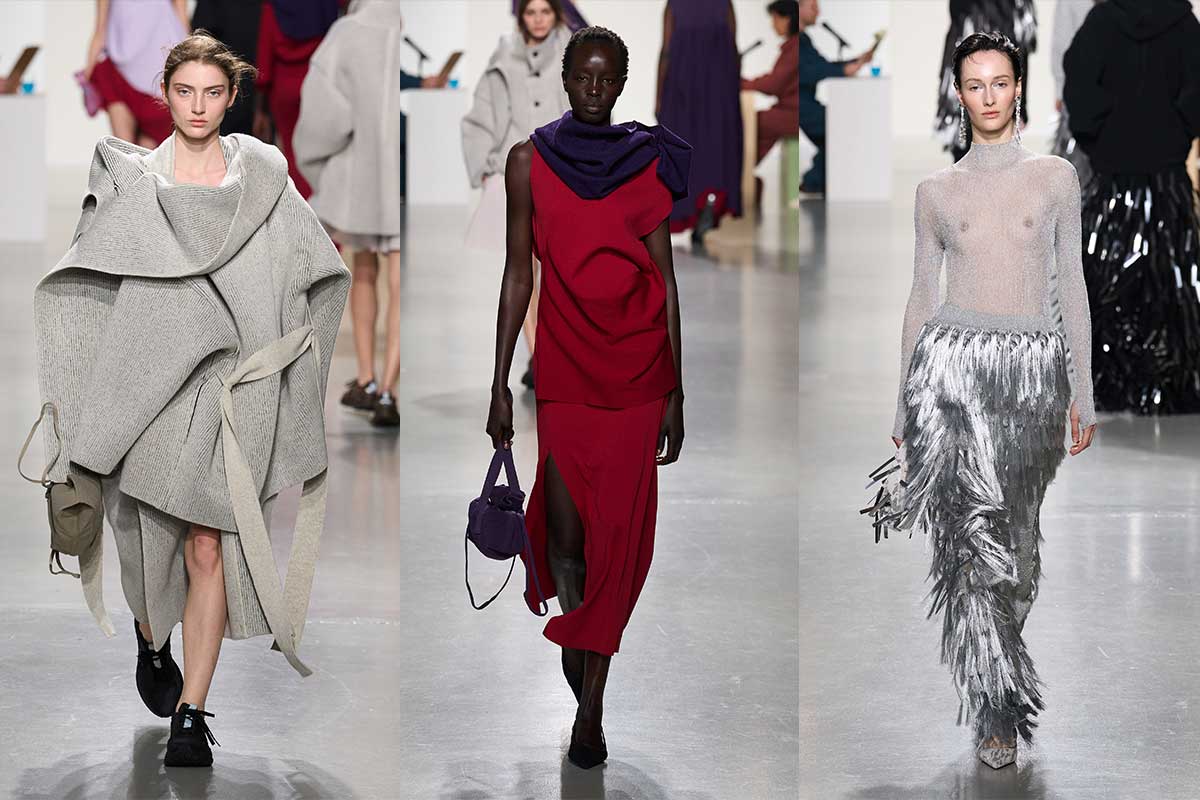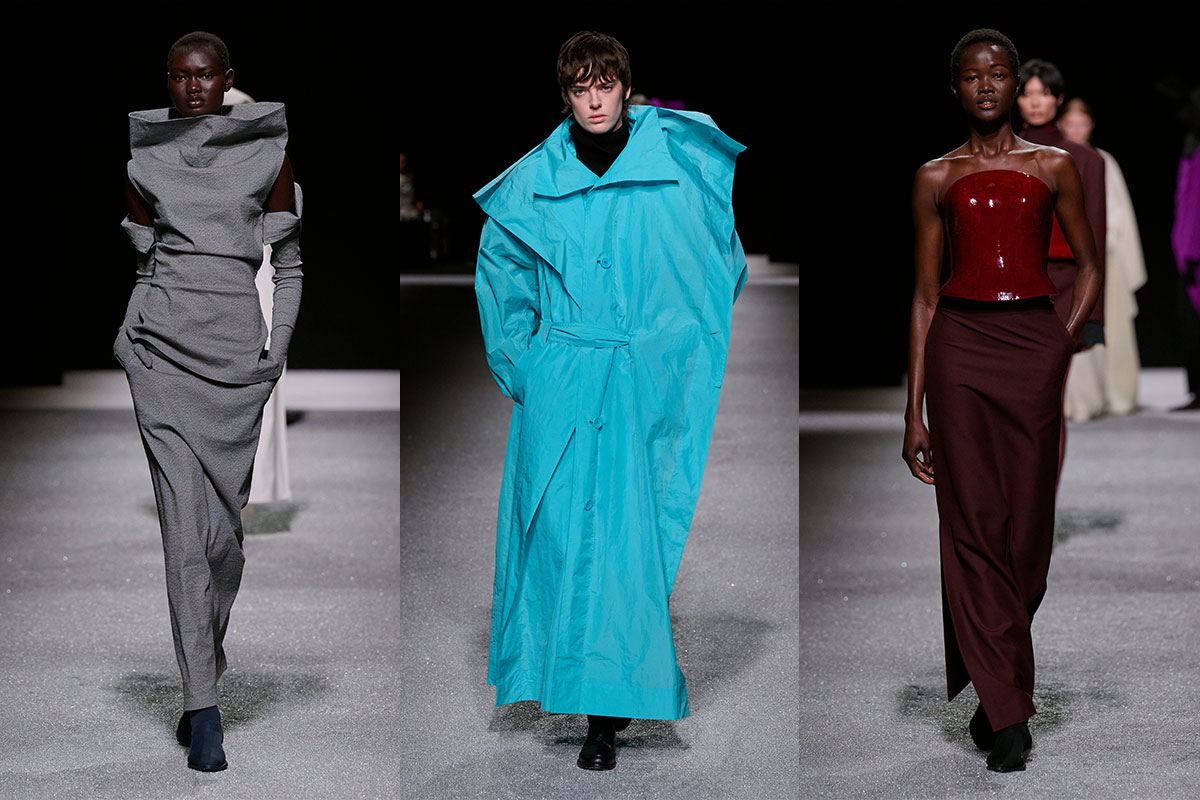 This season, the focus on the Paris runways was clearly on outerwear and sculptural silhouettes. Statement coats were particularly striking at Louis Vuitton, Loewe and CFCL. There, oversized and sculptural coats anchored the silhouette with strong volumes and architectural shapes and formed the visual climax of the collection. Quilted and padded outerwear at Isabel Marant, Dries Van Noten and Anrealage also brought a tactile depth to the layering looks.