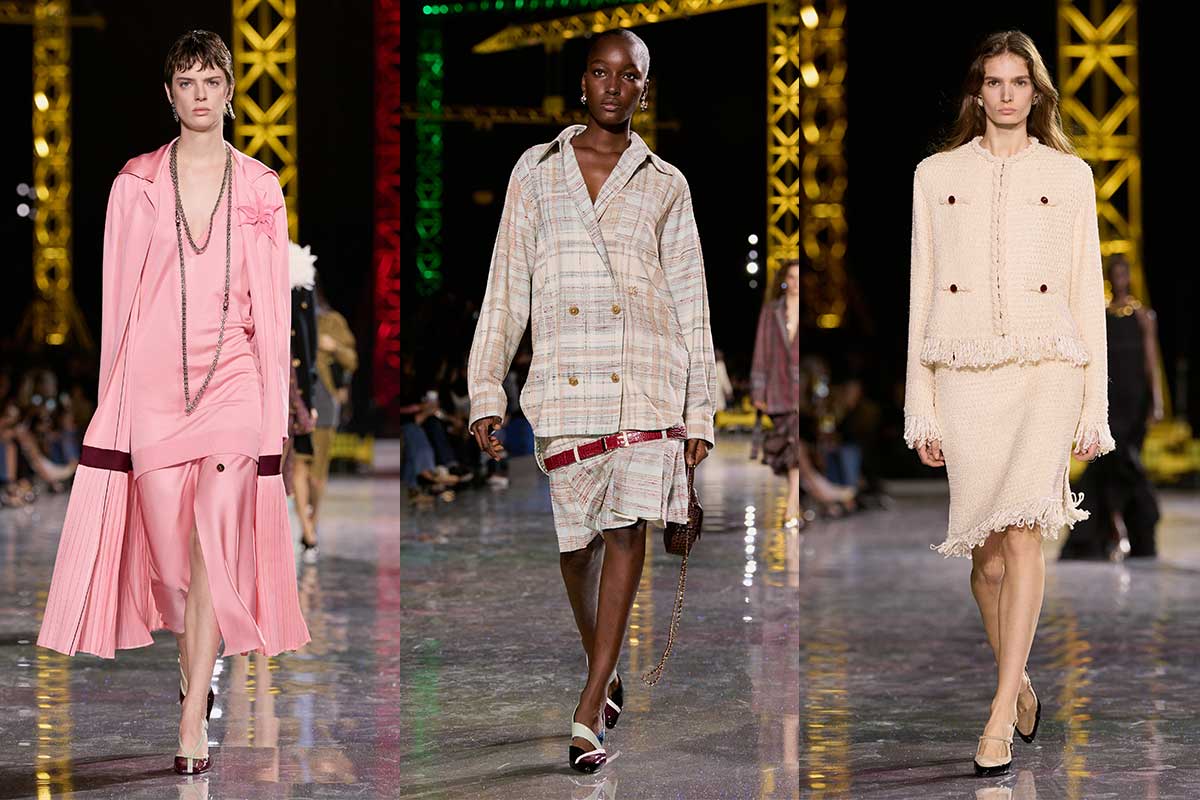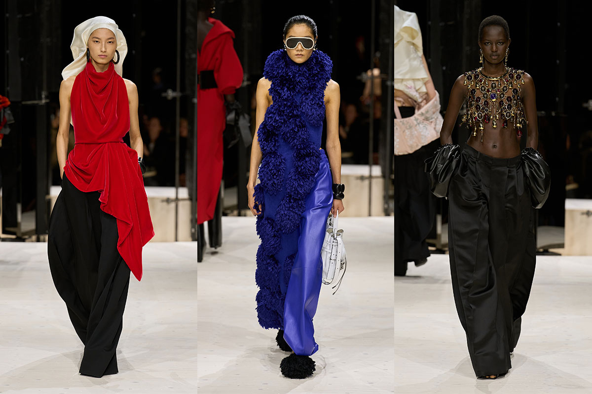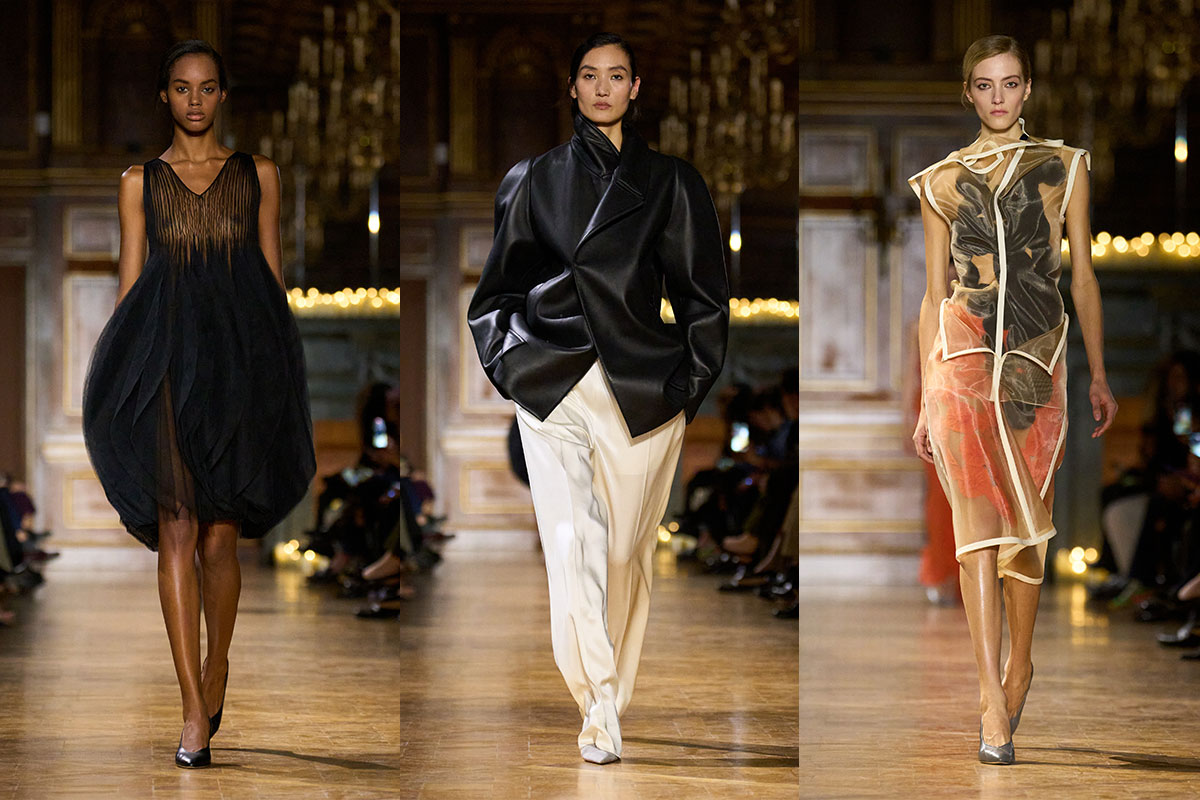 Silhouettes and tailoring also stood out. Column-like silhouettes could be seen at houses such as Alainpaul, Elie Saab and Alexander McQueen – each interpreting this shape in their own way. Striking shoulders defined the tailoring: sometimes sharply constructed, sometimes softly lowered. At Balmain, Anrealage, Saint Laurent and Stella McCartney, this created strong, self-confident profiles. At Chanel, the silhouette became softer: flowing fabrics and lowered waists created movement and lightness without losing the timeless elegance of the house.