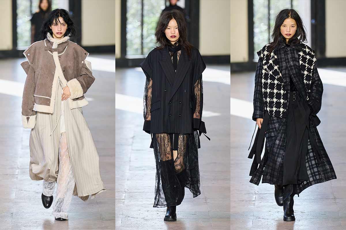 Material contrasts and precise workmanship gave the collections additional depth. Fur trims – for example at Dior, Zimmermann and Ann Demeulemeester – brought structure and winter drama. Leather inserts and sculptural leather pieces appeared on many runways, especially at Balenciaga, Alaïa and Louis Vuitton. At Hermès, materials such as wool and leather were combined, while functional elements such as pockets, zippers and precise hardware sharpened the construction and added a utilitarian accent. This underlined the house’s mastery of leather tailoring and Nadège Vanhée’s flair for refined design subtleties. At Ujoh, Mitsuru Nishizaki introduced lace into the collection for the first time, adding a delicate transparency to the house’s otherwise precise, clean tailoring.