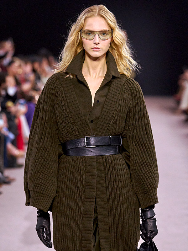 Clothing shapes and is malleable. That sounds more philosophical than it is. We are referring in particular to the ever-widening waist belts that you see everywhere at the moment. Belts exist not only to hold pants in place, but also to give the thickest cardigan and the coat that is three sizes too wide an exciting shape.