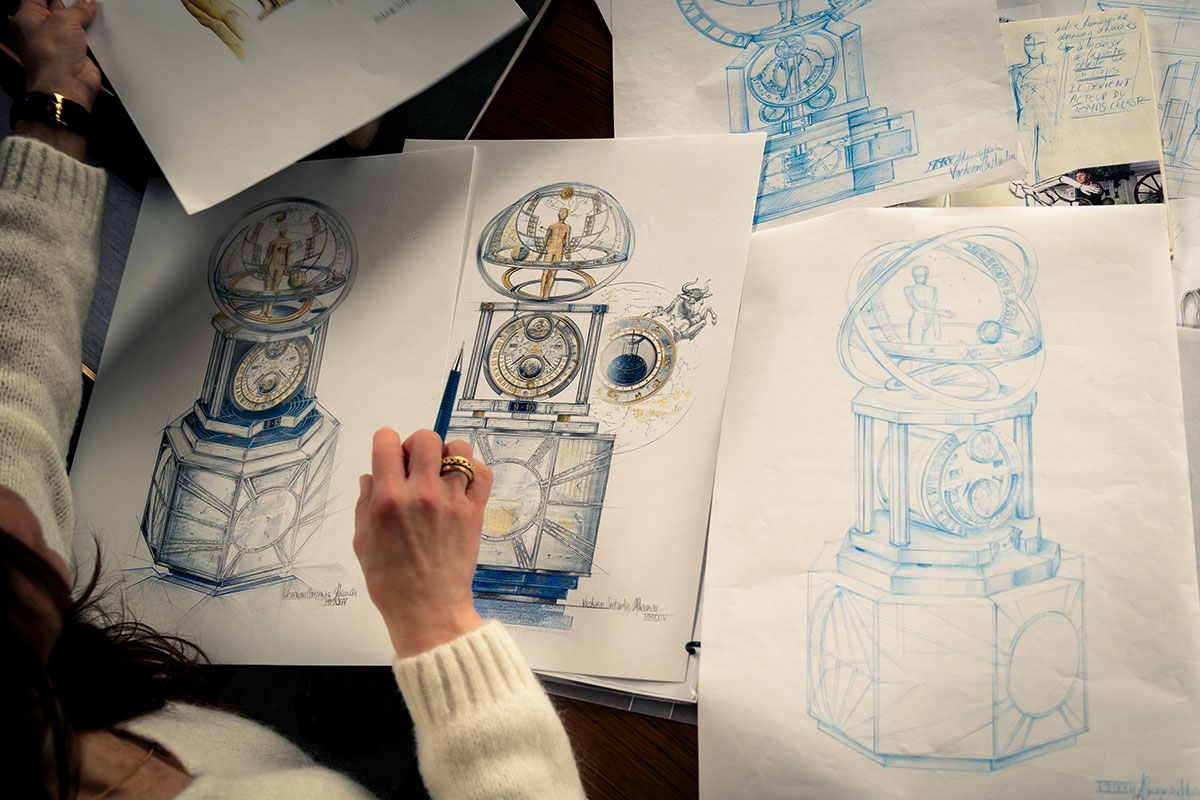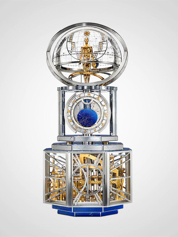A question you should never ask yourself if you don’t want to lose the joy in life: Do you really need this? Ruins your mood in 99.9 percent of all cases. It’s much better to ask: Does this make you happy? “La Quête du Temps” by Vacheron Constantin, a table clock over one meter high that took seven years to develop, is something that, from a purely rational point of view, nobody really needs. That’s why we want this masterpiece all the more, because not only is it a masterpiece of watchmaking, it also celebrates craftsmanship and ingenuity – values that we cannot afford to lose. The openable work of art, with integrated astronomer, consists of 6293 mechanical components, 23 horological complications and three levels: the dome, the astronomical clock and the base. Seven patent applications in the field of watchmaking and eight patent applications in the field of automata have resulted from this haute horlogerie extravaganza.