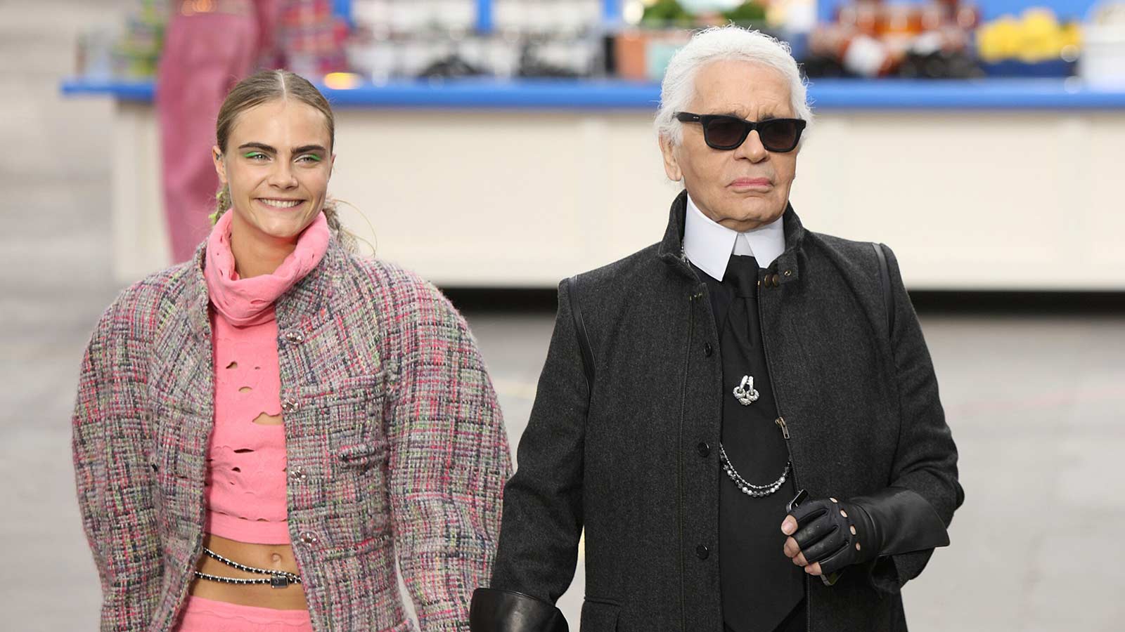Als der Pariser Grand Palais zum Supermarkt wurde: Karl Lagerfeld inszenierte seine Prêt‑à‑porter‑Herbstkollektion 2014 nicht auf einem klassischen Laufsteg, sondern zwischen gigantischen, prall gefüllten Regalreihen. Die Models schritten durch ein 13.000 Quadratmeter großes Labyrinth aus rund 100.000 Alltagsprodukten, während sie ihre von den Goldketten der Chanel-Taschen eingefassten Einkaufskörbe mit „Coco Cookies“, „Signorina Farfalle“ und „Eau de Chanel“ füllten.
