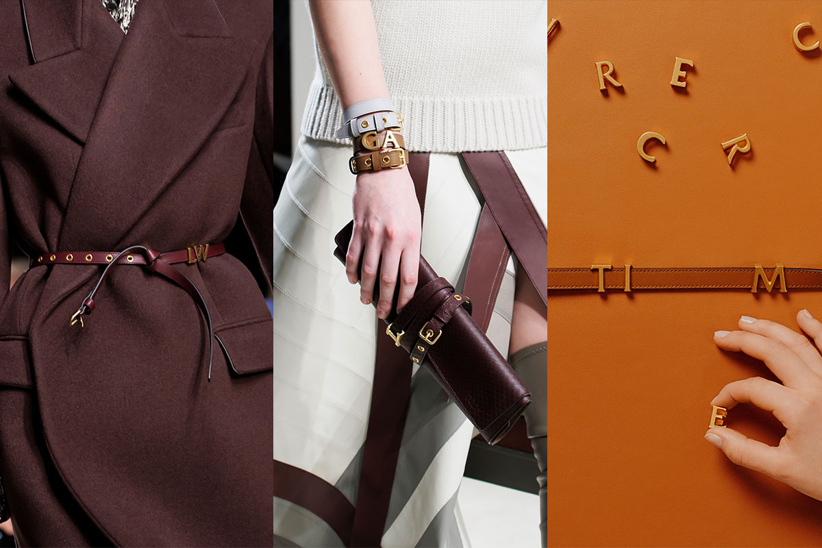 Individuality through craftsmanship: narrow belts, leather cuffs and bags are provided with metal letters that allow you to compose your own initials.