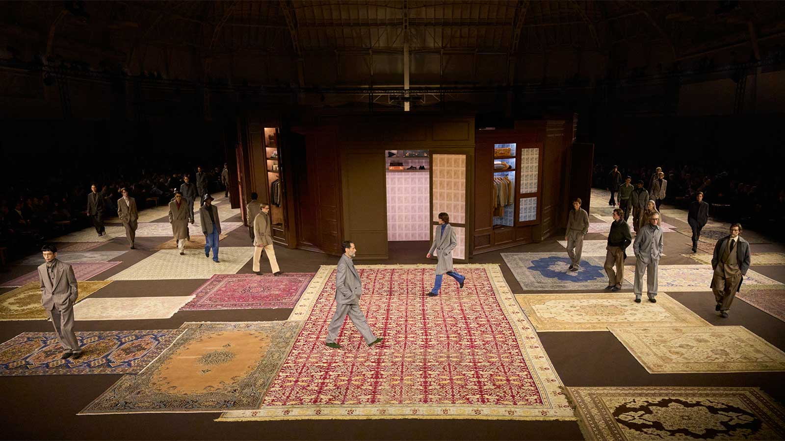For Zegna, fall/winter 2026 is about showing continuity as a form of resistance. The collection is presented in an imaginary family closet made up of real items of clothing from the Zegna family and shows menswear as something to be collected and not simply used up. Under Alessandro Sartori, tailoring became more relaxed, but without relinquishing its authority: Coats become longer, shoulders more angular, pants become higher and have a balanced volume. Classic codes are not discarded, but recalibrated, with double-breasted jackets designed to change function and proportions.