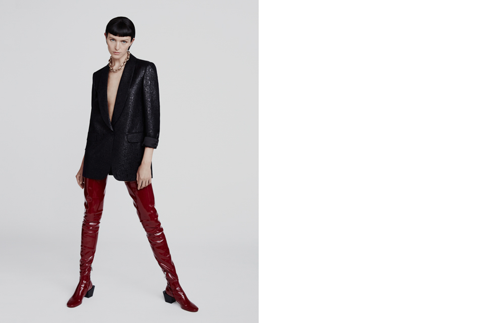 Jacket by DRIES VAN NOTEN. Boots from SPORTMAX. Necklace from ESCADA.
