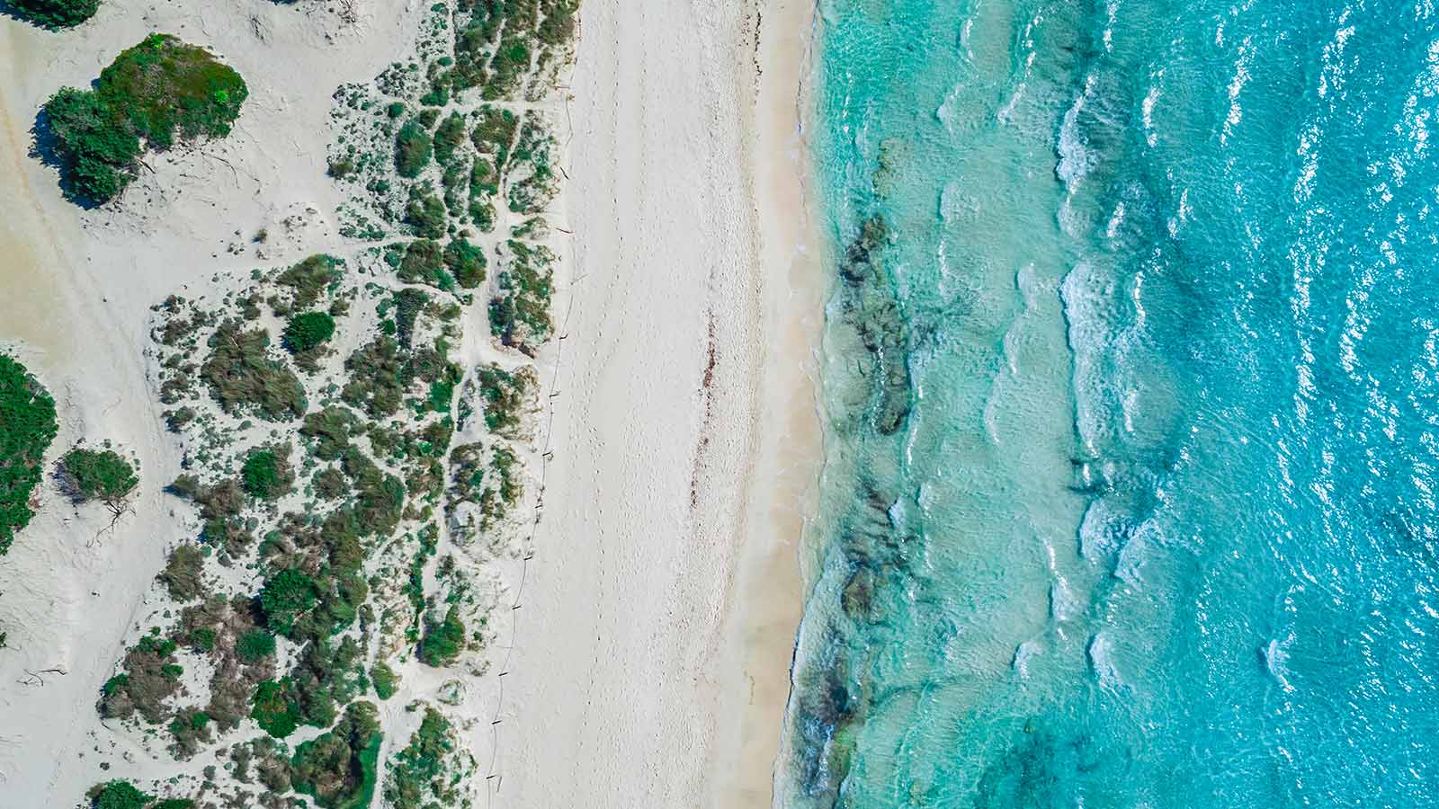 One of these is the finca “Flor de Sal a Sa Canoveta”, which presents a successful blend of contemporary design and regional architecture in the midst of Mediterranean nature. Natural stone façades are reminiscent of Mallorcan country houses. Floor-to-ceiling windows allow plenty of light into the rooms. The minimalist aesthetics and open design make it an ideal retreat for travelers looking for peace and style in one of Mallorca’s most beautiful landscapes. Coastal landscape and rural atmosphere meet and merge into a unique mix. Es Trenc beach is only nine minutes away from the finca and is one of the most beautiful beaches in Mallorca. Quieter bays such as Can Curt and Platja des Port are also within easy reach. The small town of Campos retains its original charm with a weekly market and small cafés. And in Colònia de Sant Pere there are restaurants with sea views.