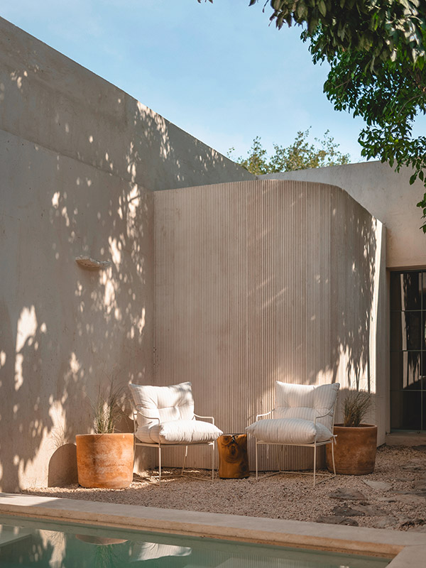 The fact that the sun often shines in Mexico benefits the project, as important parts of the transformed building are outdoors. Around 70 percent of the original structure was preserved, which reduced the ecological footprint of the construction work. The historic stone walls are a reminder of history, while the modern interior carries the house into the future. A clear goal led the elaborate project: More light must come in. A new floor plan divides the house into six different areas – three covered and three open. The transition between inside and outside is fluid. The heart of the building is the inner courtyard, which also functions as a passive cooling element. So while passers-by swelter in the heat, the happy owners of the Vistalcielo can relax in the pool, enjoy the coolness of the stone walls and look up at the sky.