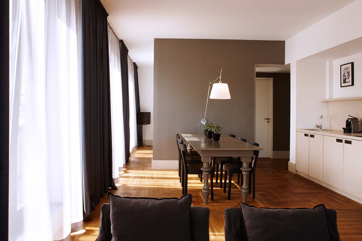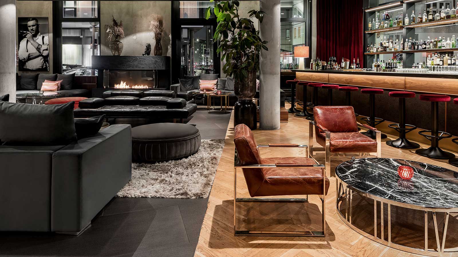 It couldn’t be more central: if you arrive by subway or streetcar, you only need to walk a few steps to reach the stylish lobby, where a bar invites you to linger. Dark velvet fabrics, warm lighting and the odd colorful decorative giraffe make the Amano unmistakable.