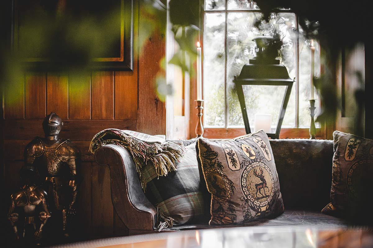 Georgiana and Edwin fix their tousled hair, their hearts pounding and their stomachs rumbling. Downstairs in the dining room, the candles are lit for dinner. The services of a private chef are included during your stay at the lodge. The dishes are made from local ingredients – mushrooms, asparagus, game – and either end up on the porcelain plates or as a packed lunch for a pony picnic in the countryside. Perhaps the two lovebirds will make their plans for the day ahead while nibbling. A local guide could lure them out of bed early and accompany them through the forest in the morning hours. The misty soup slowly evaporates in the rays of sunlight shining between the trunks of the pine trees. The old man under the Deerstalker hat slips the couple a telescope. They spot birds, deer, perhaps even a veritable “Monarch of the Glen”, the stag whose portrait made Landseer immortal as a painter. Arriving at the water’s edge, Georgiana and Edwin have their companion hand them two fishing rods. Just as Anders Holch Povlsen used to cast a fishing rod into the water on the shore in his childhood, the duchess and her artist now want to catch their next meal themselves. Should the couple’s luck run out at nearby Loch Insh, they can still take heart and spontaneously plunge into the cold water for a refreshing dip. Back at the lodge, the warming fireplace is already lit.