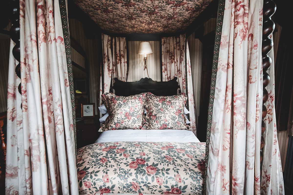 When Georgiana Russell and Edwin Landseer rubbed their cold feet together in the Highlands, they were surrounded by little more than air, love and clay. If they were to return to their petit chez-soi today, they would find seven bedrooms at Glenfeshie Lodge, where the couple can relocate their activities. A fire is already crackling in the fireplace in the stately Entrance Hall, casting warm light on the wood paneling. Some of the furnishings were designed by Ralph Lauren and Ward Denton in 1998. Every cushion and every knob looks like a journey back in time to Scottish history. The Duchess and her prince charming don’t waste much time and head up the stairs to the Feshie Room. In the most spectacular bedroom in the house, a four-poster bed awaits, its sins concealed by tartan curtains. The burgundy chaise lounge by the window looks out over the River Feshie, with the green and ochre and blue of the Highlands beyond.