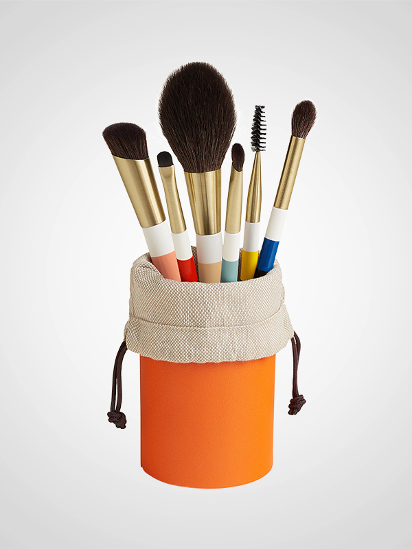 Two kinds of people pack brushes in their luggage: artists who want to capture their surroundings on paper or canvas while traveling and make-up lovers who want to contour on the go. Hermès has the perfect solution for the latter if only hand luggage is allowed. The “Les Voyageurs” travel set contains six make-up brushes, from eyeshadow and contour brushes to the brand new multifunctional brush. The make-up tools are assembled and produced by hand in a French manufactory that has specialized in the production of brushes since 1793.